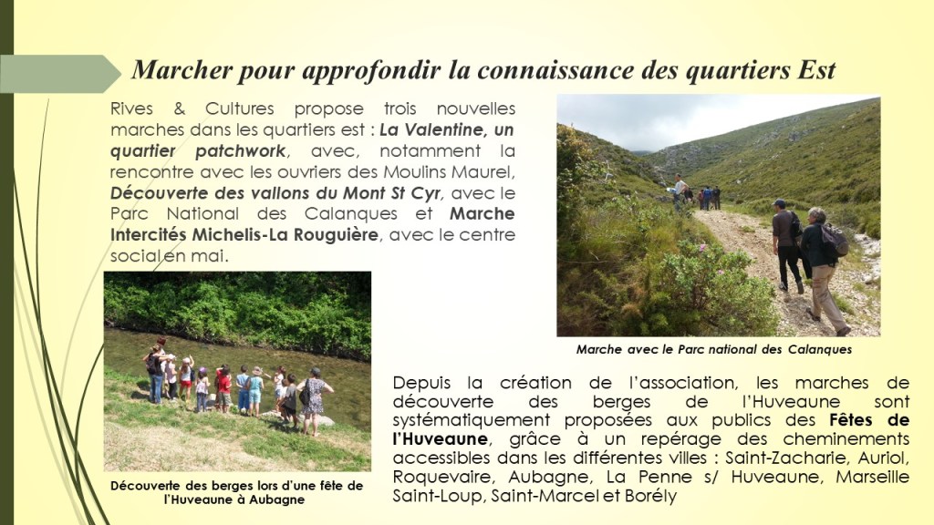 - Balades de découverte des quartiers Est de Marseille et marches thématiques