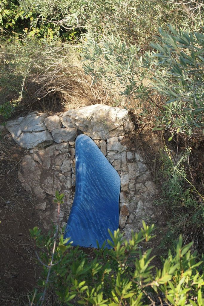 La sculpture-signal est l’œuvre de Roland Bellier et a pour nom « La source fossile« . Son implantation fut quelque peu mouvementée… En effet, un premier site avait été choisi dans le domaine de l’Etoile, à proximité de la ferme urbaine Terre de Mars et en bordure du GR 2013, avec le soutien de la Ville de Marseille, propriétaire de cette parcelle. Malheureusement, la présence de la Source fossile ne semblait pas convenir à tout le monde, puisqu’elle a été retrouvée vandalisée à plusieurs reprises, si bien qu’il a été décidé de la réimplanter dans un site un peu plus confidentiel, en contrebas de la crête de l’Etoile.